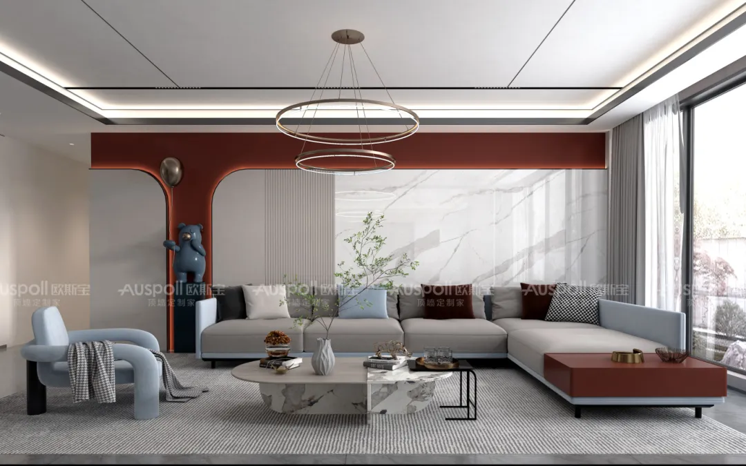 歐斯寶蜂窩大板,一板到底,將各個(gè)空間連成一片,整體性更強(qiáng),在視覺(jué)感官上減少了壓抑感,配合頂墻一體化設(shè)計(jì),恰到好處將整個(gè)空間點(diǎn)亮。