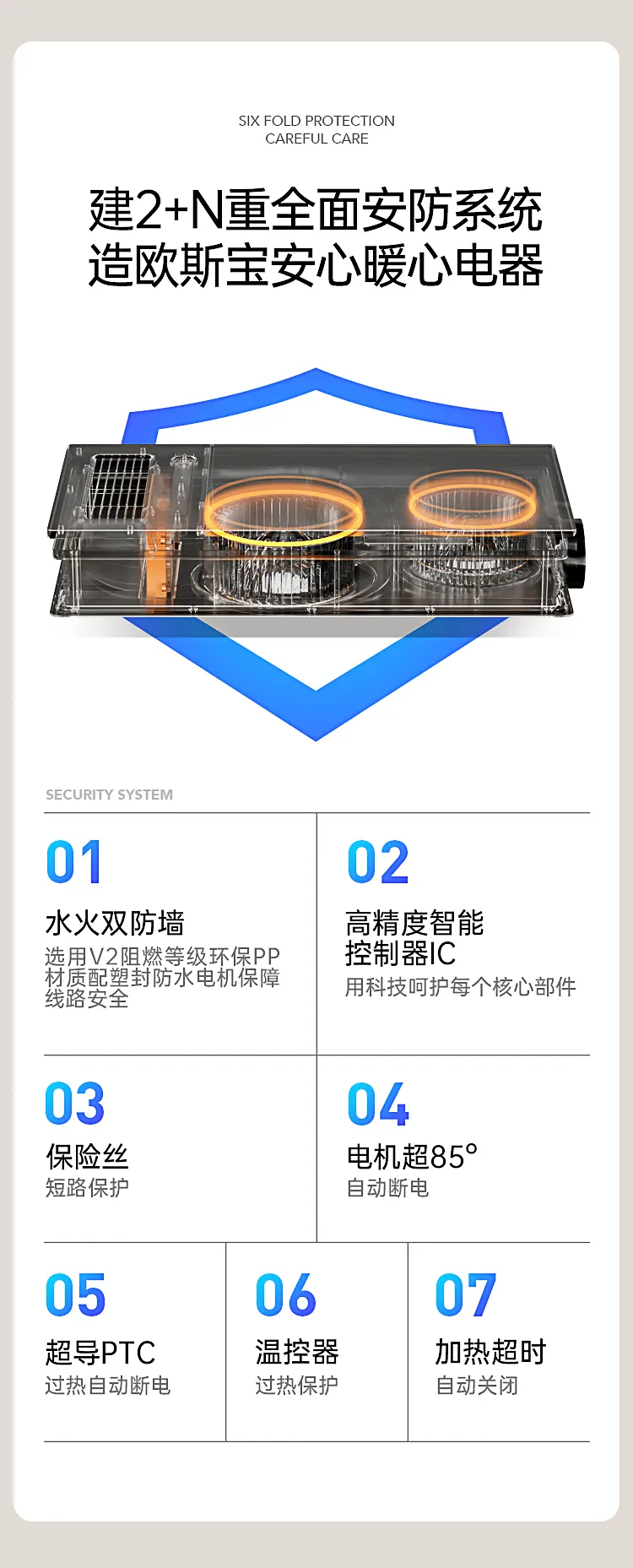 產品所具有3C安全防護認證,防火,防水,防潮,防火,防過熱,有效杜絕安全隱患,讓您在享受溫暖的同時,更加安心。