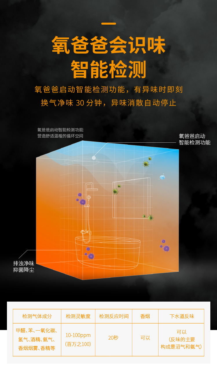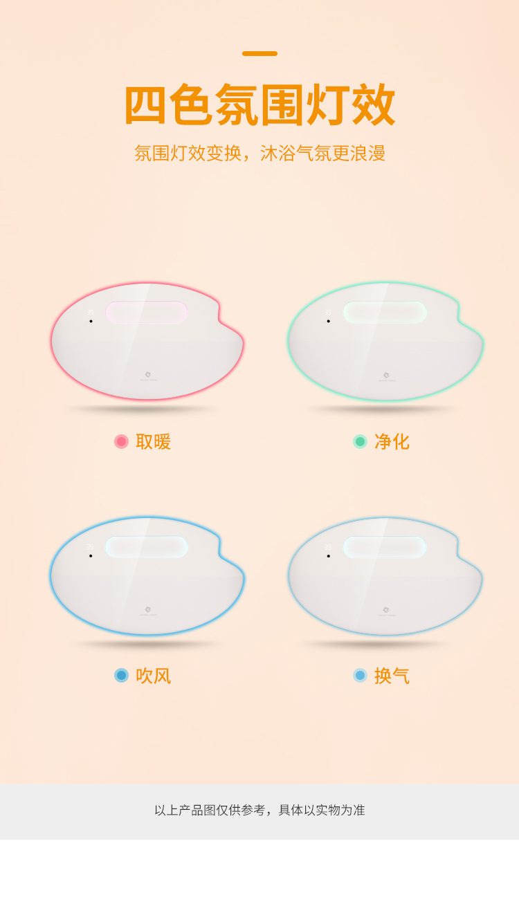 吹風、風暖、換氣、干燥、擺頁、氛圍燈、負離子凈化、煙味自動檢測、無線按鍵開關