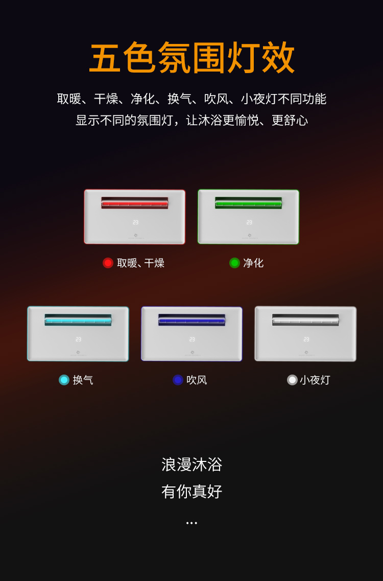 風暖、換氣、吹風、氛圍燈、負離子、擺風