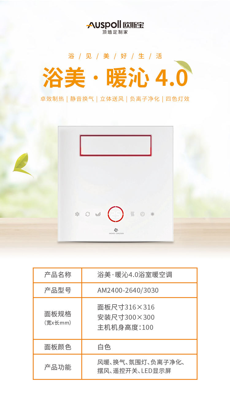 歐斯寶新品浴室空調——浴美暖沁4.0。